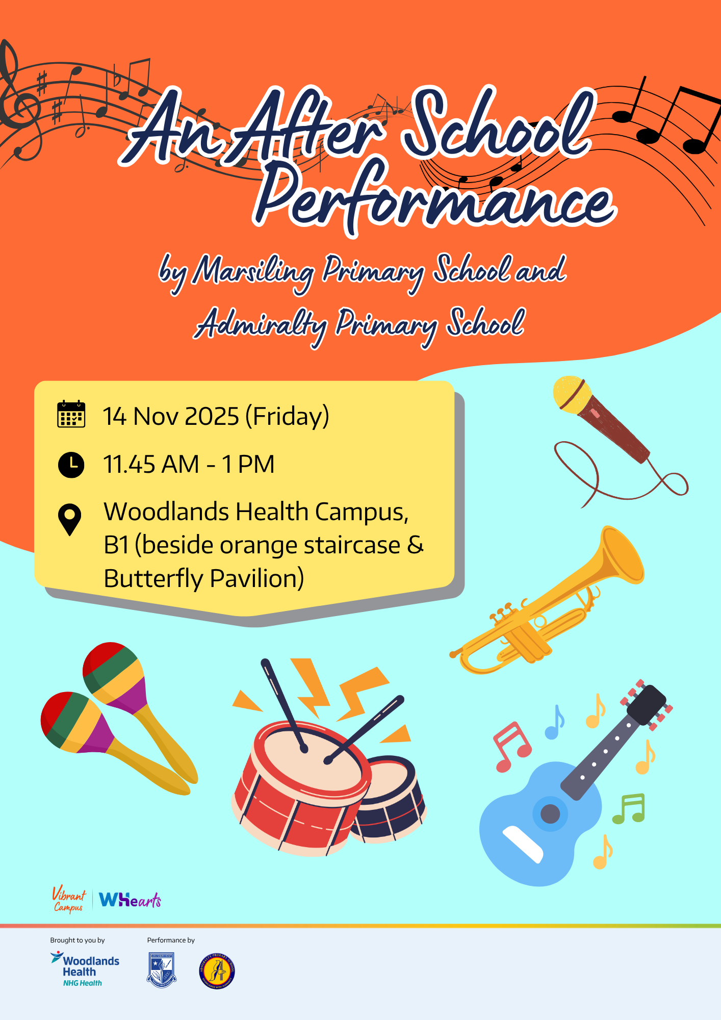 Woodlands Health Campus, B1 a (beside orange staircase & Butterfly Pavilion)