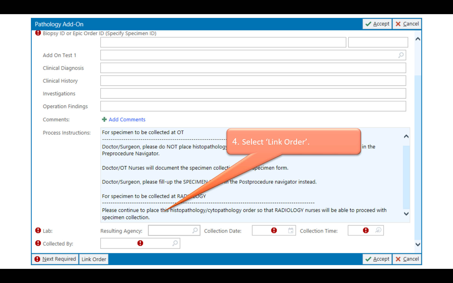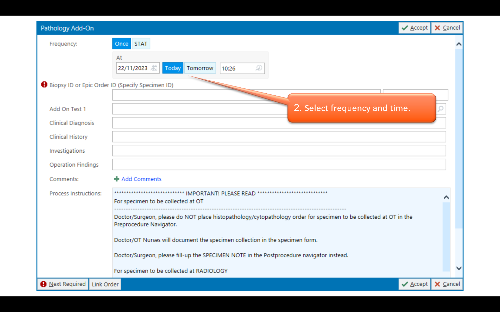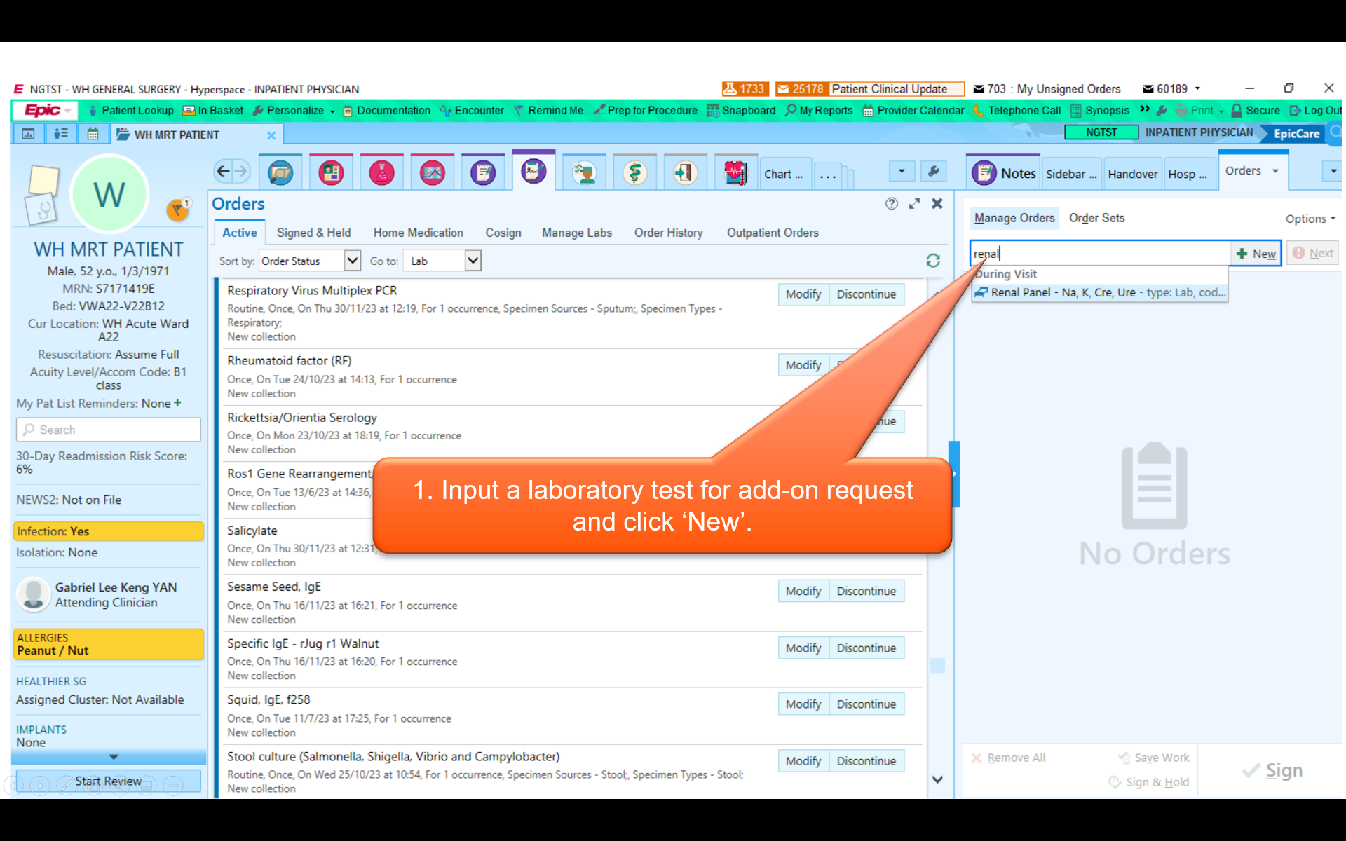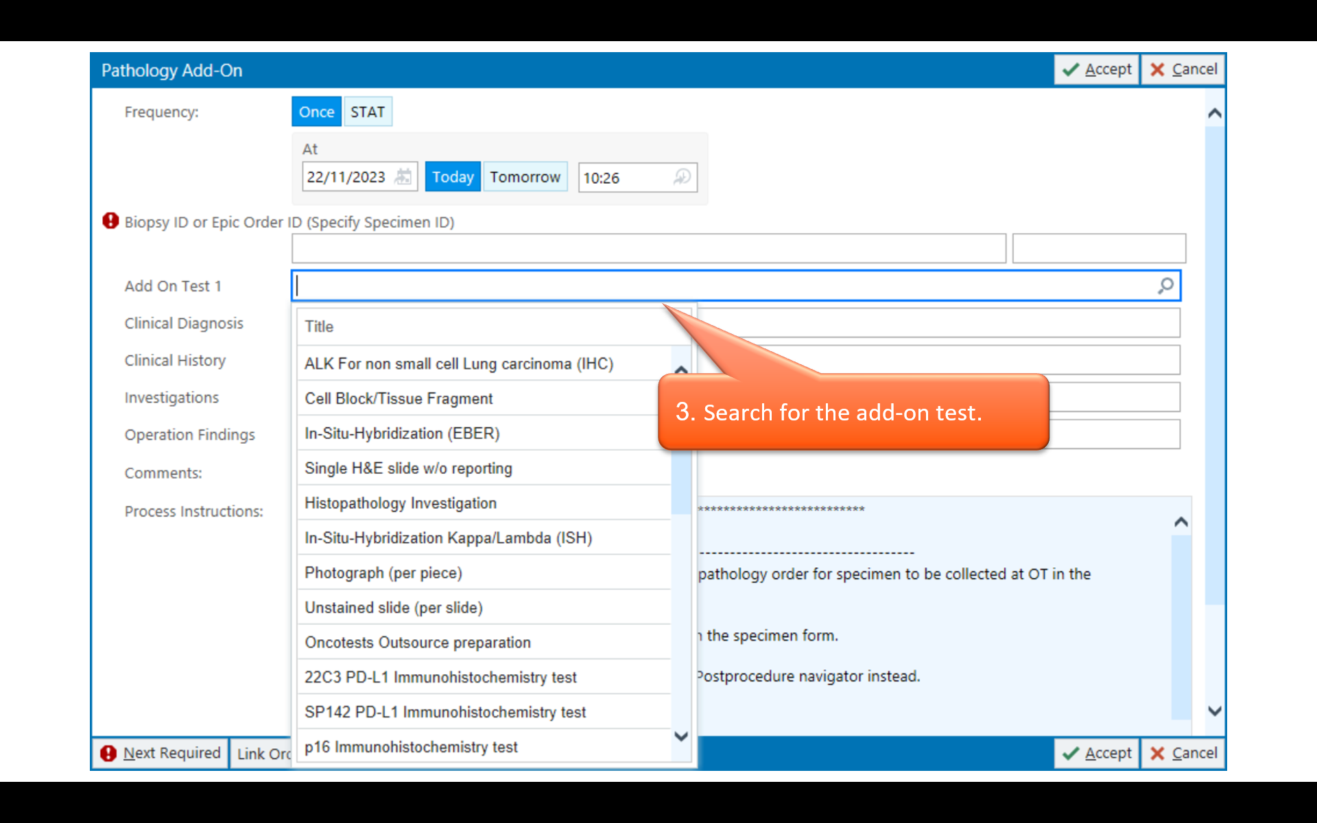 Anatomic Pathology (Histopathology and Cytopathology) test orders are also made in NGEMR, but specimens must be accompanied by a hard-copy request form (either printed from NGEMR or completed manually during NGEMR downtime). Refer to NGEMR tipsheet on Pathology orders.